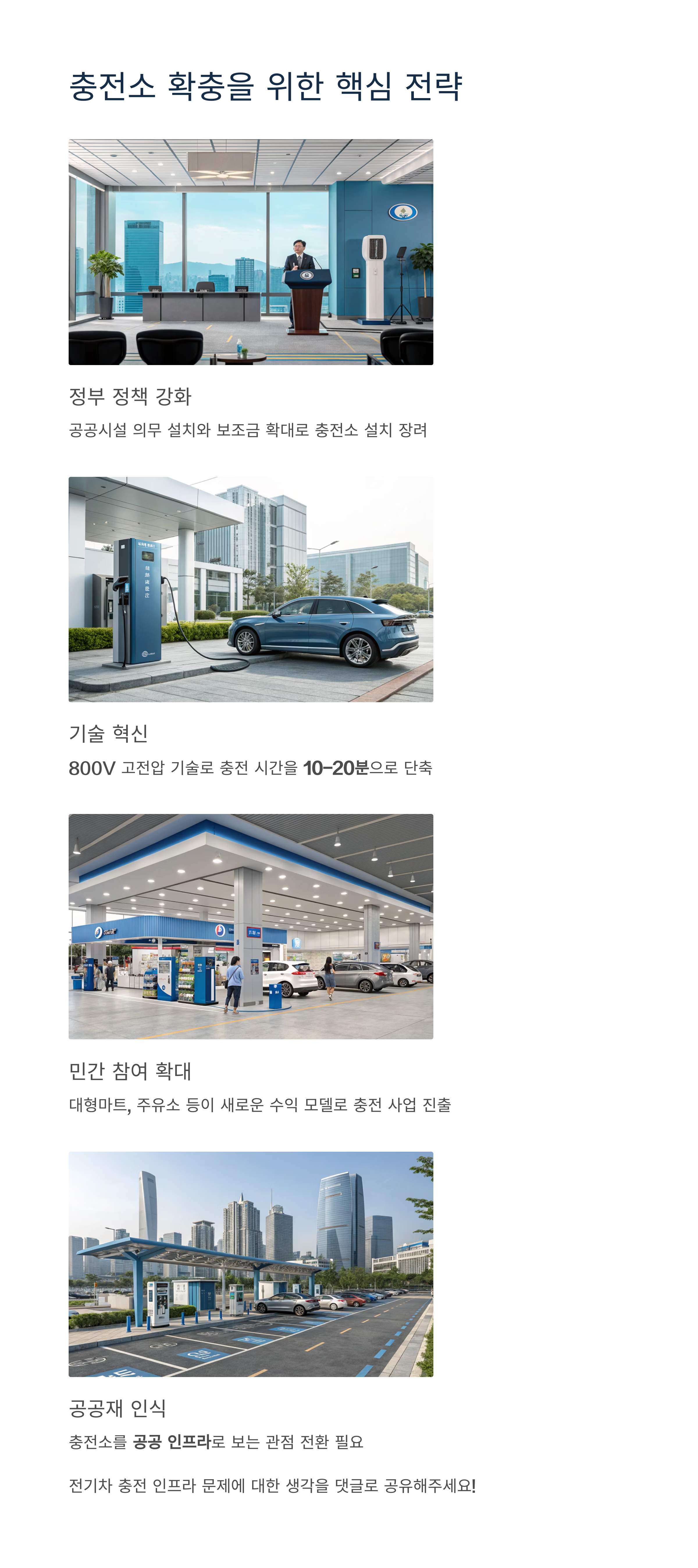 이러한 시스템이 안정적으로 자리 잡는다면 충전소 부족 체감도는 점차 줄어들 것입니다.