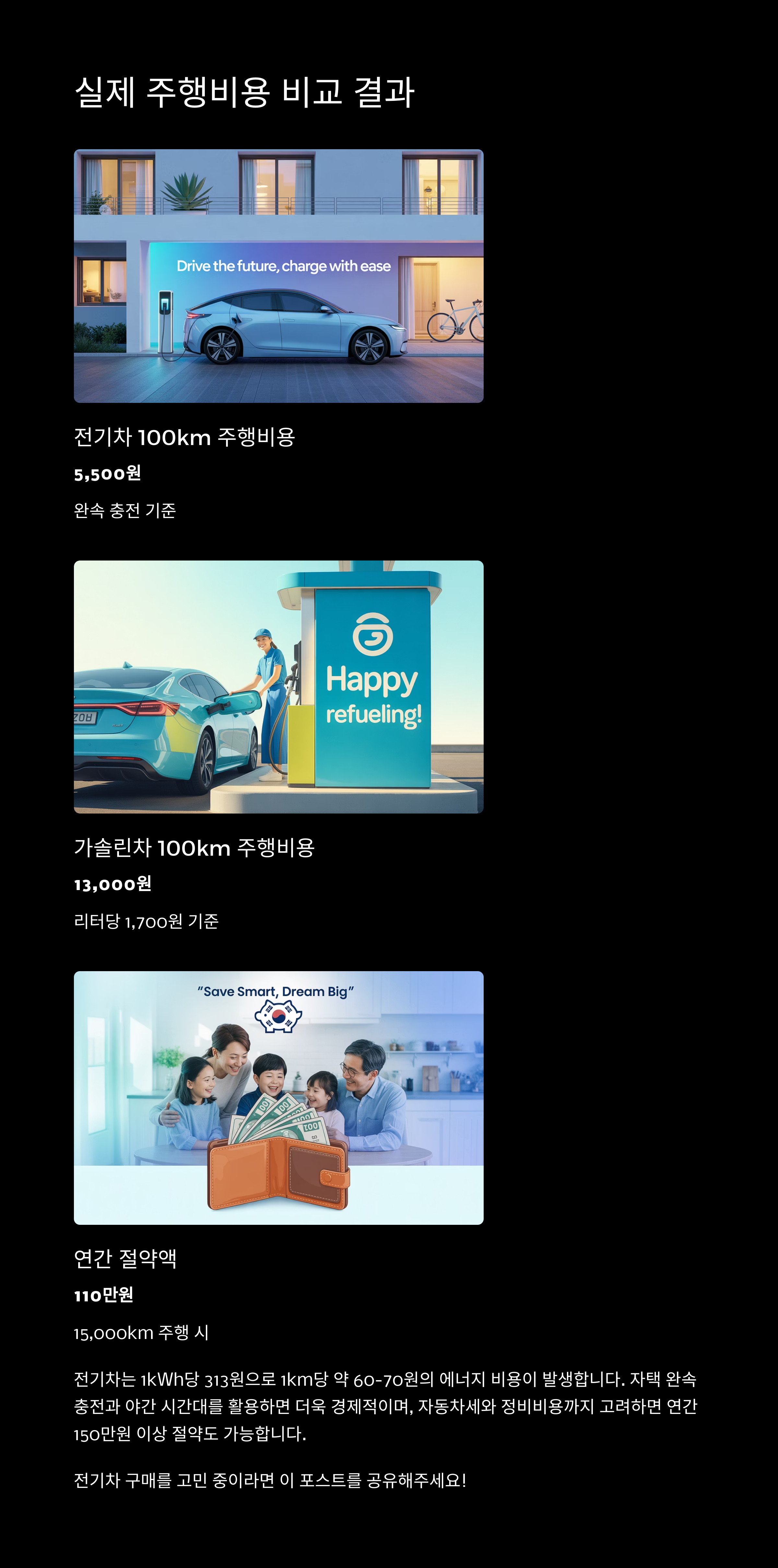 이는 전기차의 가장 큰 경제적 장점이라 할 수 있습니다.